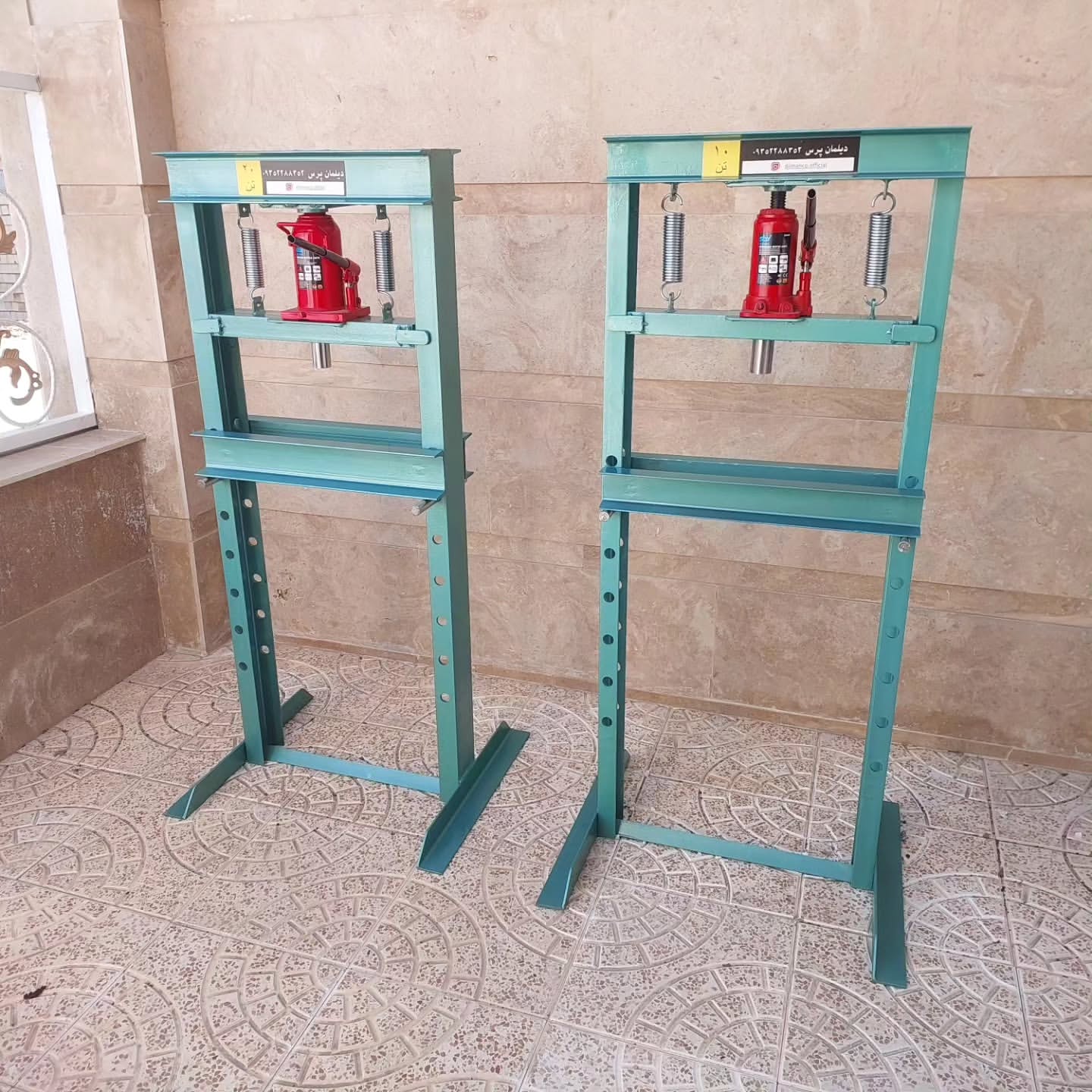 پرس هیدرولیک دروازه ای ۱۰ تن با پمپ دستی و تناژهای مختلف برای مکانیکی ها ، جلوبندسازها و کارگاههای صنعتی تولید شده و برای کارهایی مانند در آوردن و یا جازدن بلبرینگ، پولی و قطعات دیگر در تعمیرگاه هاو همچنین پرس کردن ، سوراخ کاری ورق های فلزی ، آلومینیومی و انواع قطعات صنعتی ، برش انواع مواد چرمی و مصنوعی استفاده میگردد. مشخصات پرس هیدرولیک 10 تن : سیستم : هیدرولیک دستی ابعاد شاسی دستگاه : 150 × 60 × 8 شاسی : ناودانی نمره 8 سنگین وزن دستگاه : حدودا ۶۸ کیلوگرم قابلیت تنظیم صفحه پایین در اندازه های مورد نیاز